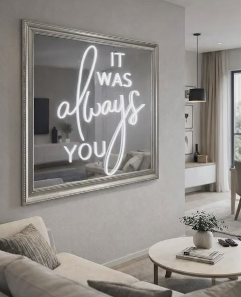 It Was Always You LED Neon Framed Sign Silver Mirrored